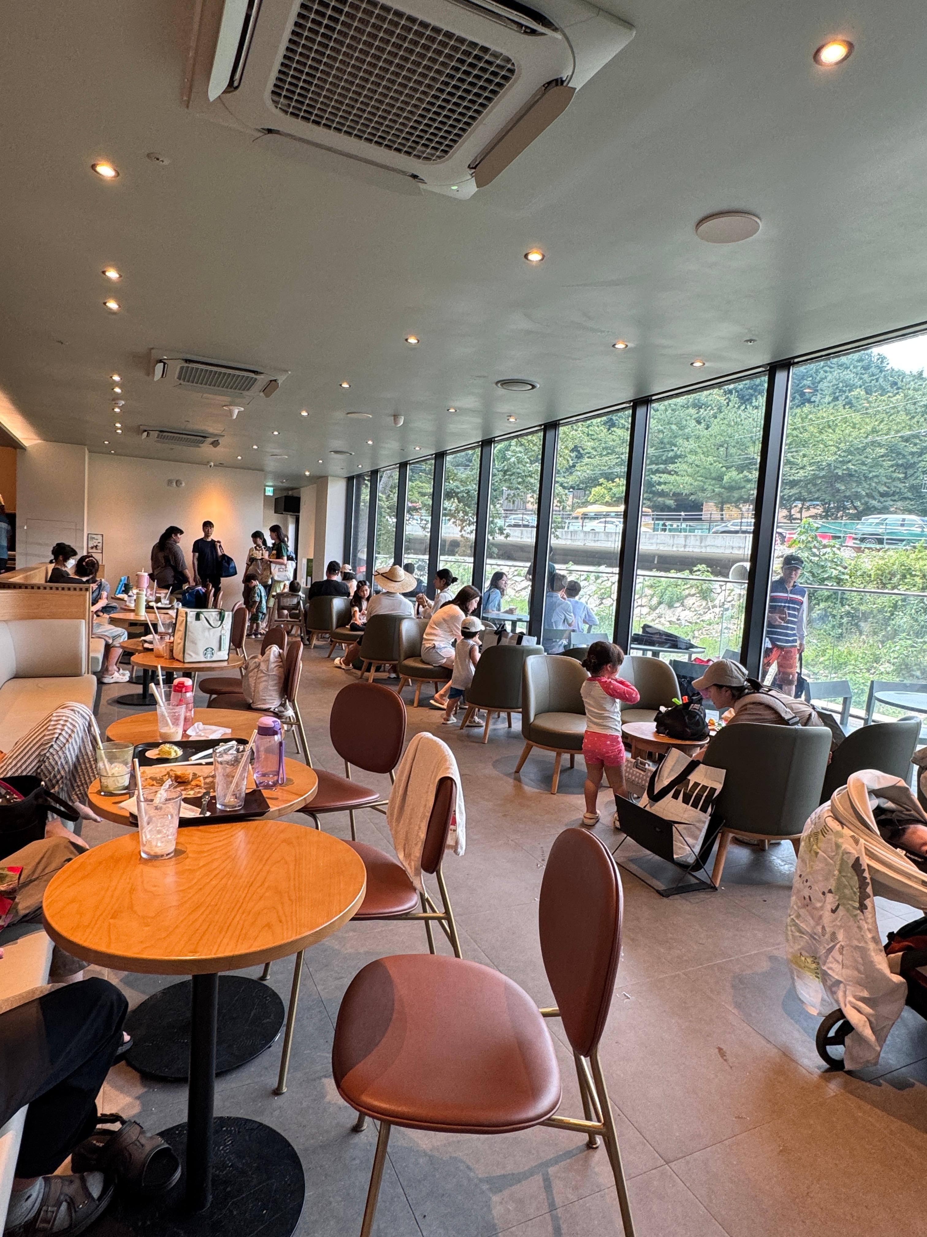 - 지하 1층: 계곡 쪽으로 내려가는 길과 연결이 되어있습니다. 아이들과 방문한 고객들이 많고, 화장실 냄새와 물비린내가 심해 오래 앉기 힘들었어요.