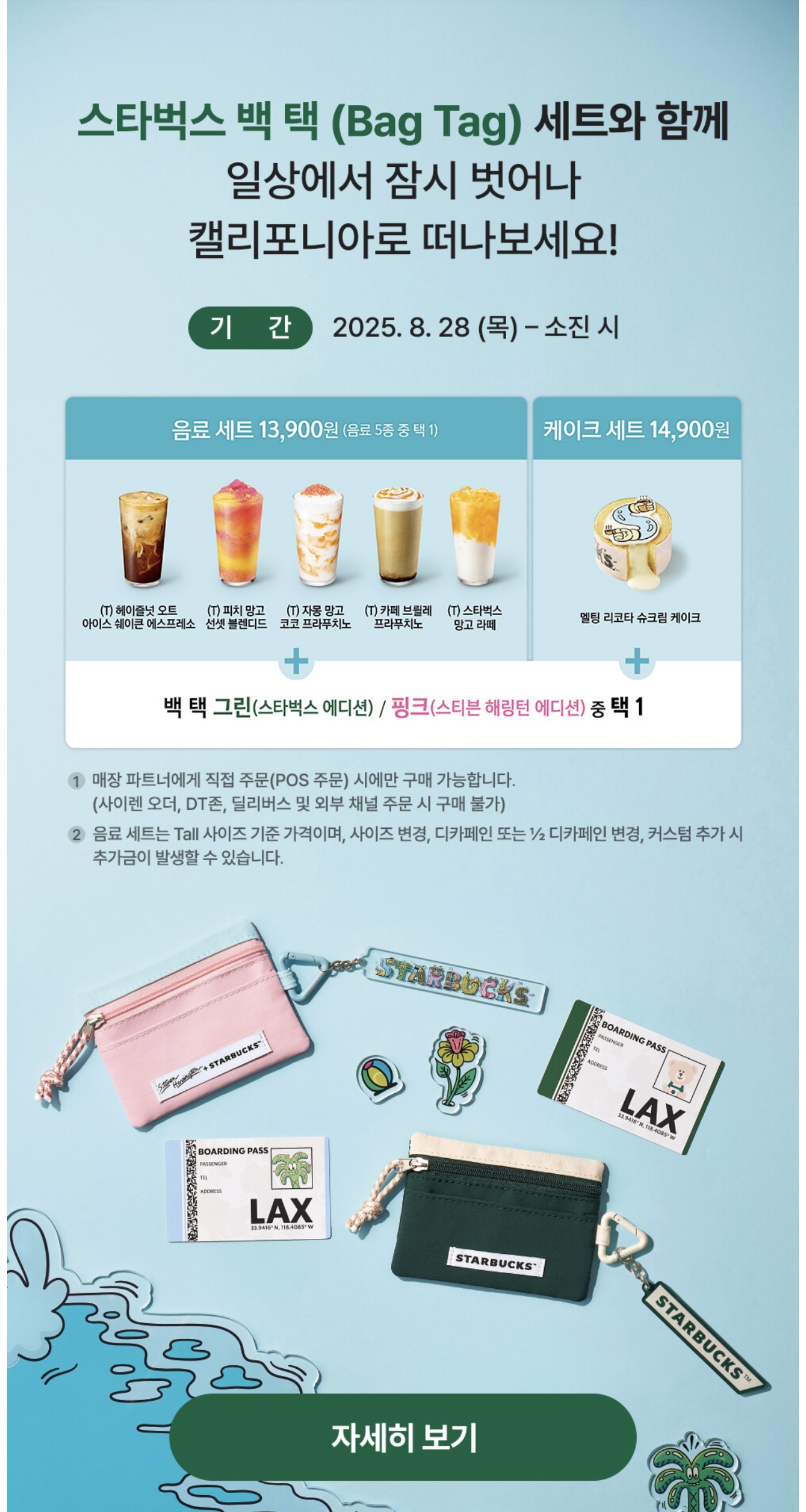 - 구성: 백 택 (그린/핑크 중 택1) + 대상 음료 1잔 (Tall 사이즈)