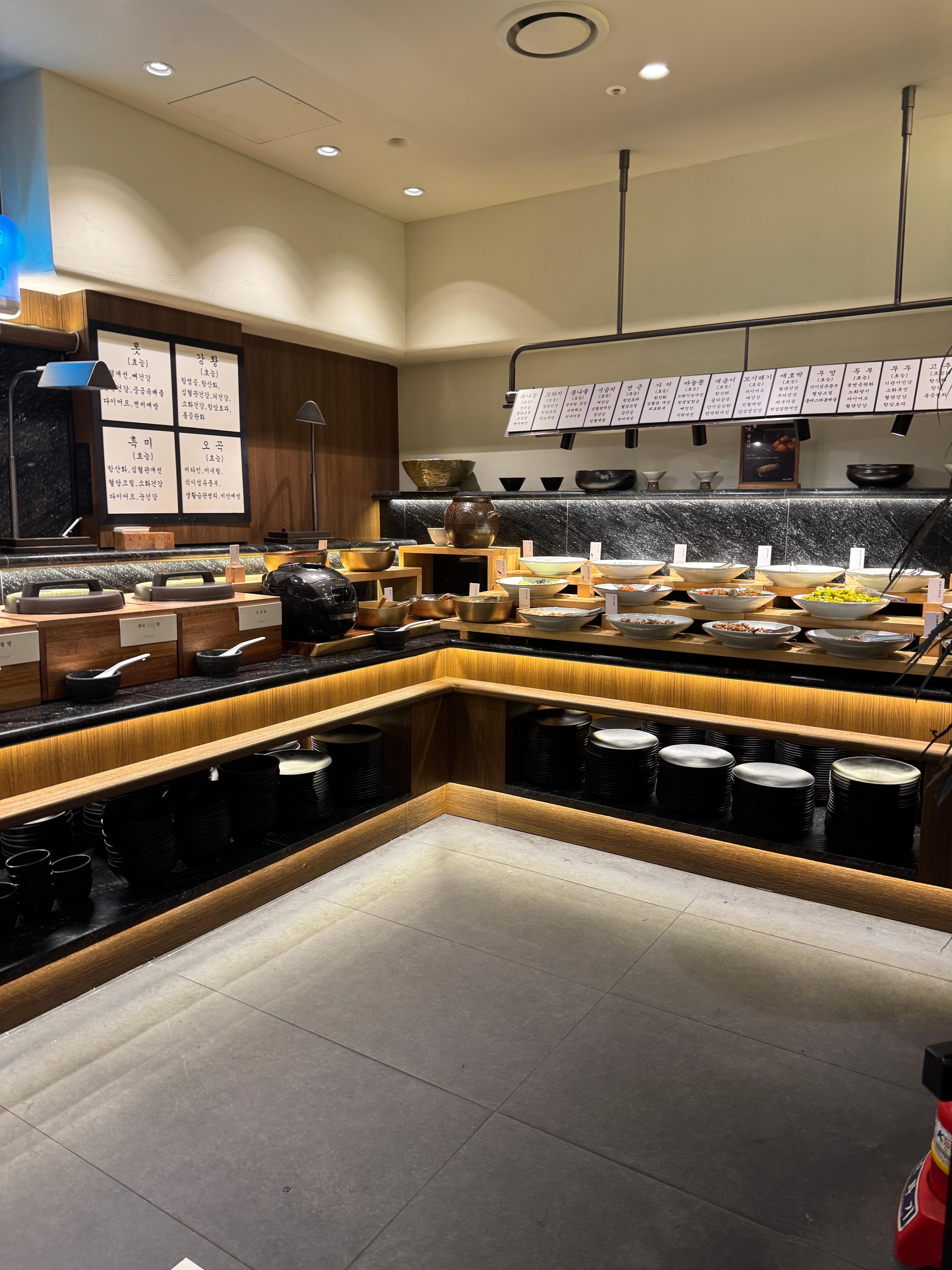 매장은 깔끔하고 정돈된 분위기였으며, '집밥 컨셉'이라는 이름처럼 정갈한 음식들이 준비되어 있었습니다. 특히 한식 뷔페답게 밥과 국 외에도 다양한 종류의 나물 반찬들이 많아서 좋았어요. 아이가 나물반찬을 잘먹는 편이어서 기대되었습니다.