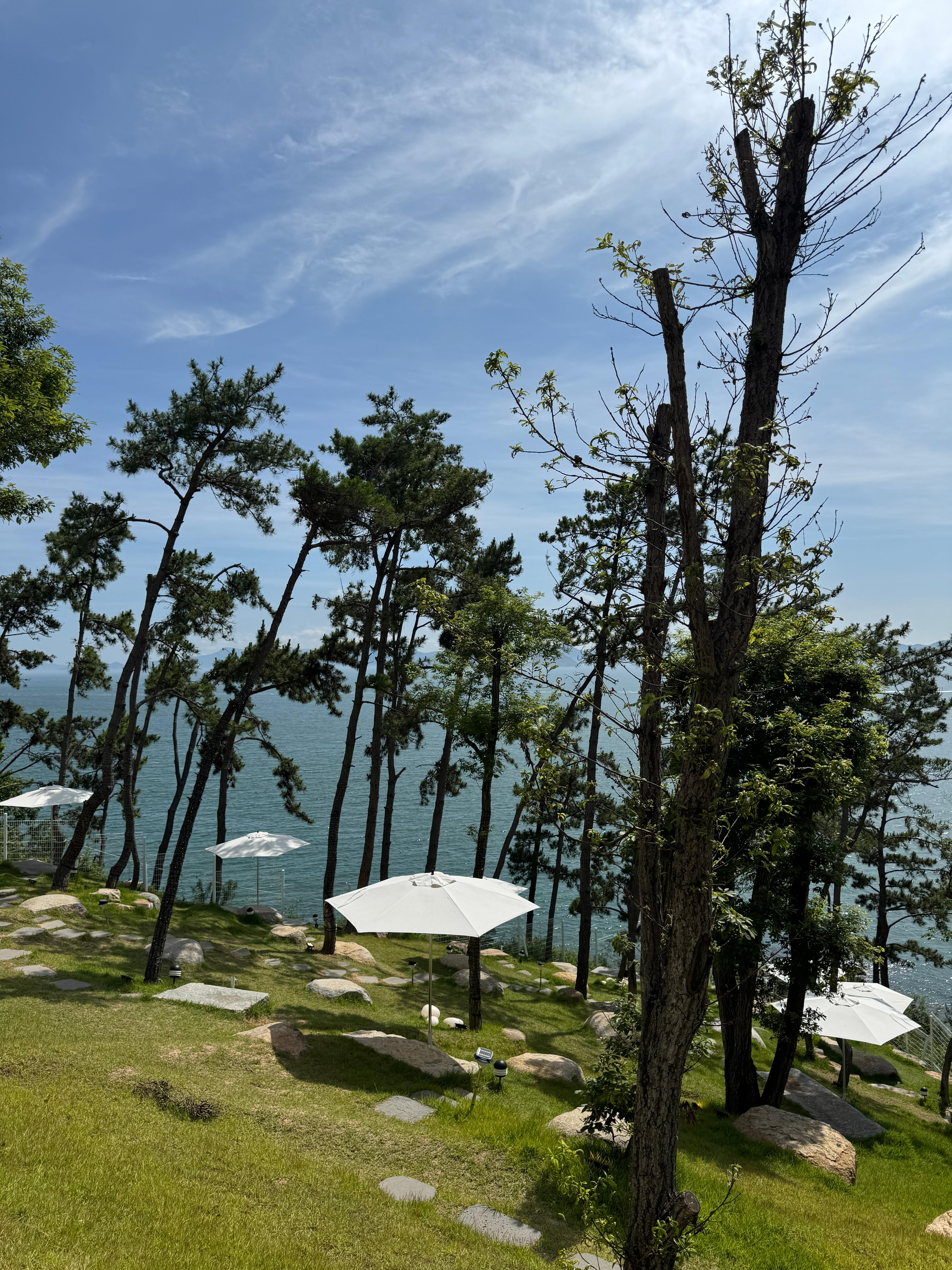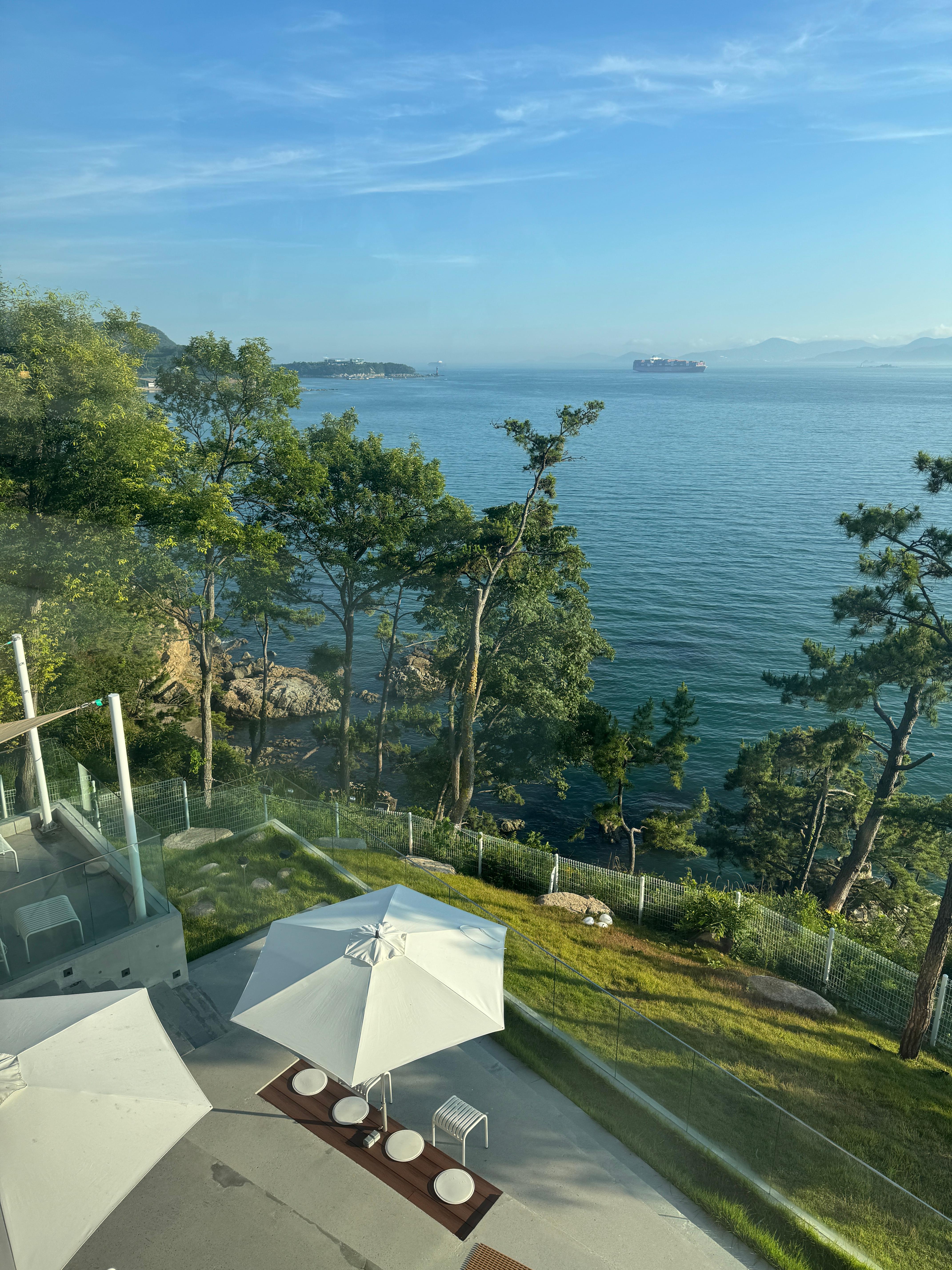 넓은 유리창과 밝은 색상의 돌 패널이 조화를 이루고, 푸른 식물들로 잘 가꾸어진 입구를 들어서면 눈앞에 펼쳐지는 바다 전망은 '멀리까지 찾아온 보람이 있다'는 감탄사를 절로 나오게 합니다. 건축미도 뛰어나지만, 공간마다 마주할 수 있는 시원한 바다 뷰가 진정한 매력입니다.
